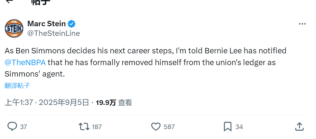 伯尼-李是NBA知名经纪人,旗下有邓恩、巴特勒等。自由市场开启两个多月,西蒙斯一直没签约,至今仍是自由身!有两支球队想用底薪签下本-西蒙斯,但西蒙斯不愿意接受底薪,他给尼克斯的答复是自己不确定“是否还想继续打球”。