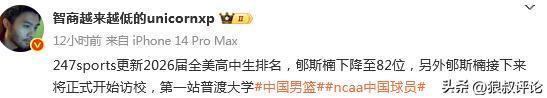 媒体人“王健”发文爆料,郇斯楠接下来将正式开始访校,第一站普渡大学。