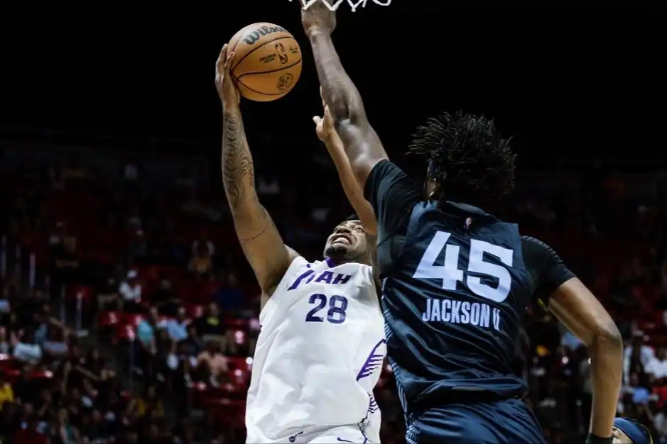 北京时间7月8日,灰熊和爵士的夏季联赛,双方激战四节,最终爵士1分险胜,灰熊前锋GG-杰克逊三分球绝平球踩线,变成了2分,非常遗憾,他跪在场上,但是没办法,当值裁判回看之后,确实是踩线了,给了2分,灰熊遗憾输球。GG-杰克逊本人砍下27分,18投11中,三年级了,来打夏季联赛,确实是碾压。另外去年的39号秀杰伦-威尔斯,上赛季就是灰熊的主力首发球员,后来被恶意犯规赛季报销,今天也出场了18投6中,砍下23分。另外灰熊常规轮换球员斯潘塞14投7中,三分球10投7中,砍下23分。
