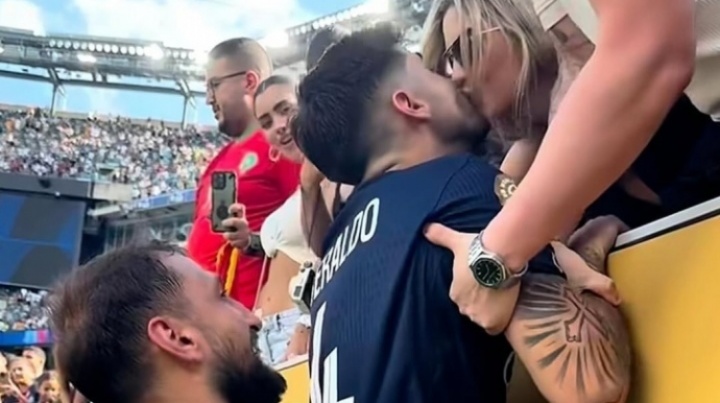 比赛结束后 ,多纳鲁马贴心的把贝拉尔多“举上看台”,让他可以亲吻女友😂🫶